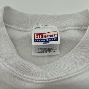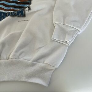 White pullover crewneck sweatshirt with chest print. From 2001.
