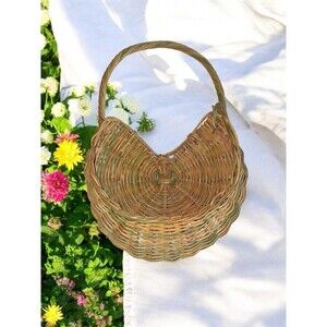 Vintage Hanging Wicker Flower Basket Handwoven Boho Cottagecore Plant Holder