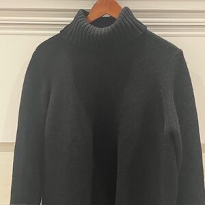 Stay warm and stylish with this classic black turtleneck sweater. Perfect for any occasion.