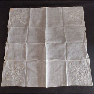 Vintage Hankie Handkerchief Cream Floral Embroidered Corners Large 15 X 15