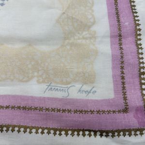 Vintage Hanky-Tammis Keefe-1950's- Handkerchief Dainty Lace Pattern Pink Gold