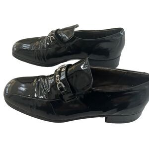 Vintage Hanover Black Dress Shoes Loafer With Gold Accent.‎ Size 10 Leather.