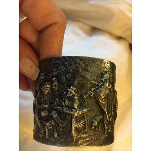 Vintage Hans Jensen Denmark Repousse Hammered Scene Silver Plated Cuff Bracelet
