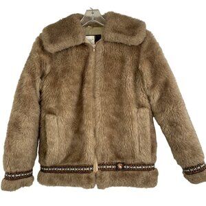 Vintage Hansa-Branta Stearns Ladies Small Faux Fur Jacket Embroider Trim Down