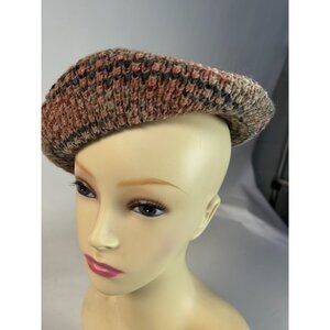 Vintage Hansen Wool & Acrylic One Size Beret In Pink & Gray Stripes Made in USA