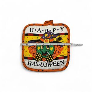 Vintage Happy Halloween/Fall Kitchen Pot Holder Quilted -Witch/Spider. Measurement of item is included in photos.