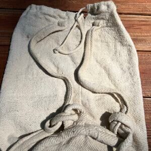 Capture that effortlessly cool, sun-faded vibe with this vintage Hard Rock Cafe Cabo San Lucas backpack. Made from a textured cloth burlap with a soft, worn-in feel, this cylindrical bag is equal parts nostalgic and functional. The iconic Cabo logo is splashed across the front, giving it major throwback energy, while the circle bottom and adjustable straps make it a perfect grab-and-go bag for beach days, weekend escapes, farmer's markets or festivals. It closes with a rope drawstring and has the kind of lived-in character that only makes it better with age. Some minor staining adds to its vintage charm—no holes, no damage, just good vibes and better stories.