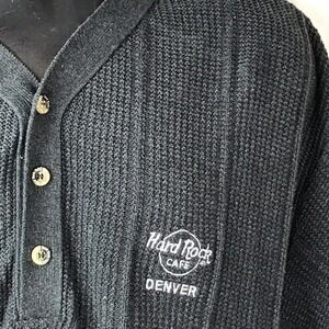 Vintage Hard Rock Cafe Denver Gray Button Henley Sweater Men’s XL