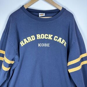 Vintage Hard Rock Cafe Shirt Mens Large Navy Blue Kobe Japan Long Sleeve Striped 90s