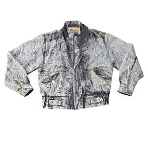Vintage Hard Rock Denim By CODA Acid Wash Bomber Jacket Zipper & Button Closure. Preowned, discoloration on sleeves as shown.