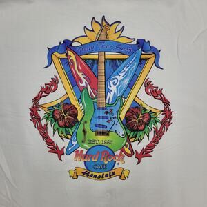 Vintage Hard-Rock Cafe Honolulu T-Shirt XL 24x27 Made in USA Heavy Cotton Tee "Pray For Surf" Guitar Surfboard Tribal Graphic