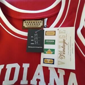 NWT. Step onto the court with the Vintage Hardwood Legends Isiah Thomas #11 Indiana Hoosiers Jersey. Crafted to replicate the iconic style of the basketball legend, this medium-sized men's jersey boasts a vibrant red hue that captures the spirit of the game and the heritage of the team. Made from 100% polyester, it promises durability and a comfortable fit, perfect for both playful pick-up games and intense matchups. The jersey features meticulous detailing with 'INDIANA 11' embroidered on the front and 'THOMAS 11' on the back, ensuring you wear your pride on your sleeve—literally. With pit to pit measurements at 17 inches and a length of 31 inches, it's designed to fit true to size. Whether you're a die-hard fan or a casual enthusiast, this piece from Hardwood Legends brings a touch of collegiate charm to your athletic wardrobe.