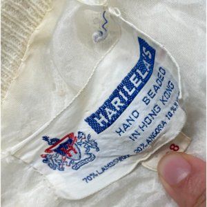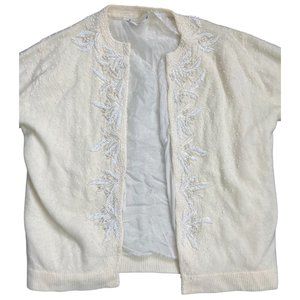 Vintage Harilela's Women's White Granny Core Beaded Lambswool Blend Cardigan 8