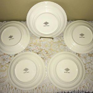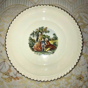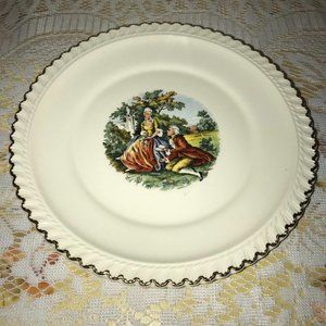 Vintage Harker Pottery Victorian Courting USA 22 Kt Gold trim Plates