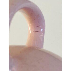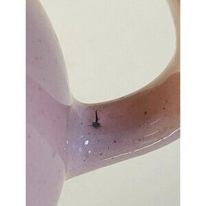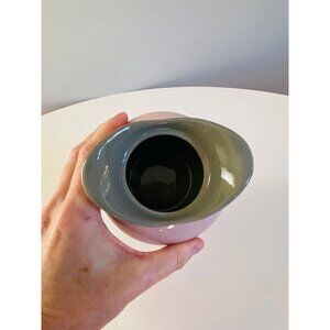Set of vintage Shell Pink Harkerware creamer and lidded sugar bowl. Pretty pink color with grey flecking. The interiors and undersides, as well as the lid to the sugar bowl are grey.