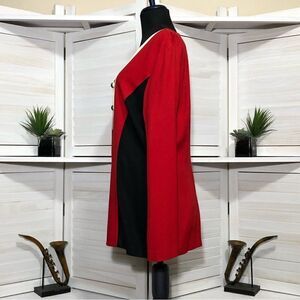#black #white #red #blazer #coat #jacket #rayon #retro #vintage #unique #cool #artsy #geometric #geometrical #harlequin #theaterattire #kitschy #cosplay #costume #outfit #cocktailparty #datenight #formalwear #eveningwear #lightweight #80s #90s #military #goldenbuttons #AvantGarde