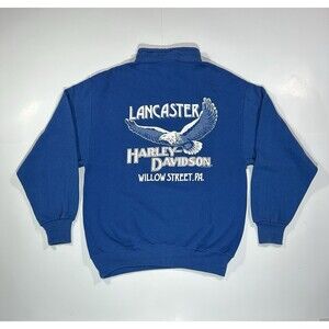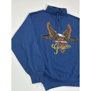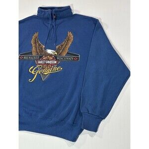 Vintage Harley Davidson 90s Quarter Zip Crewneck Blue Large Sweatshirt Milwaukee