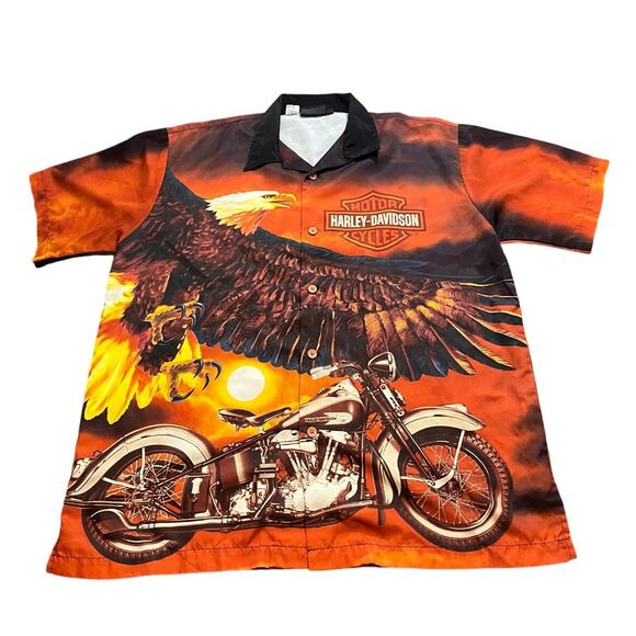 Vintage Harley Davidson AOP Eagle Motorcycle Biker Button Down Shirt Graphic XL