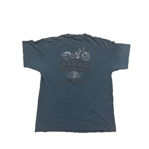 Rev up your wardrobe with this vintage Harley Davidson American Legend T-Shirt. Featuring a solid blue color and a crew neckline, this short sleeve shirt is made of 100% cotton and is a regular fit for size L. The shirt is a limited edition, all-season item with a graphic print of the iconic Harley Davidson logo.