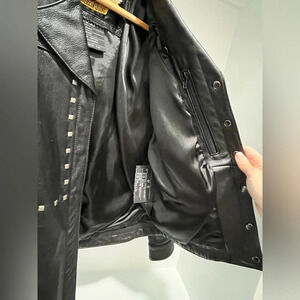 Vintage Harley Davidson Black Leather Studded Motorcycle Riding Jacket XS 90s