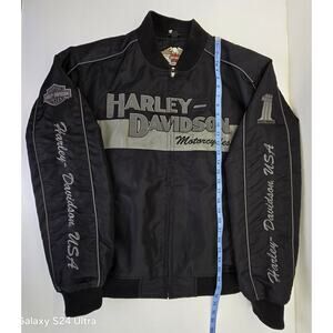 Vintage Harley Davidson Bomber Jacket Black Nylon Embroidered Motorcycle Men's L
