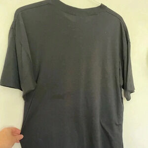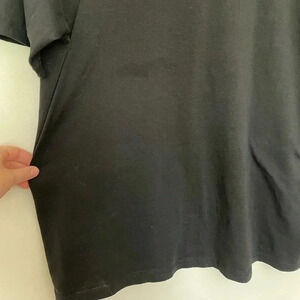 Has one small stain on back side of t-shirt only seen when you are taking pics; not noticeable when looking at the shirt