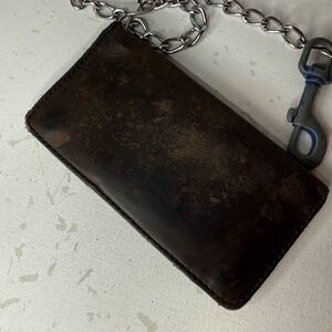 Vintage Harley Davidson Embossed Brown Bifold Leather Long Wallet With Chain