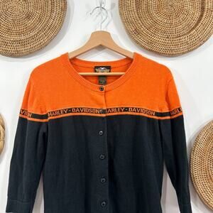 Vintage Harley Davidson Orange Black Button Lightweight Knit Cardigan Sweater Small Biker Bikercore Grunge