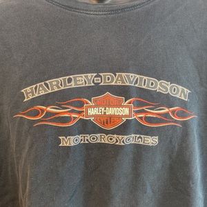Vintage Harley Davidson Long Sleeve Men's Tee, Black, Orange Print, Men's 2XL