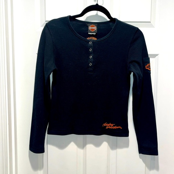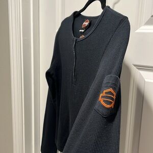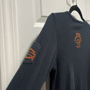 Vintage Harley Davidson Long Steve ribbed waffle knit embroidered black Henley