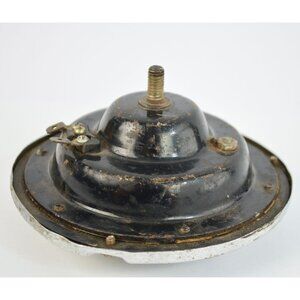 Horn appears to be OEM, not a reproduction. Has some glue stuck on the front (see pics) - I did not try to clean off. Possibly has some small areas of denting (metal might be pushed in lightly in a couple areas - kind of hard to tell though). Horn is UNTESTED and sold AS-IS FOR PARTS OR REPAIR. Measures 5.5 inches in diameter.