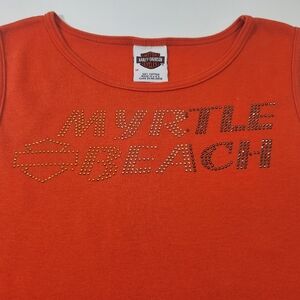 Vintage Harley Davidson Myrtle Beach Orange Embellished Tank Top Size Medium
