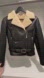 Excellent vintage condition with no stains. Scratch in leather on front right shoulder, see last photos and video. Sherpa on leather zipper pull partially worn off, see last photos. No other notable flaws.