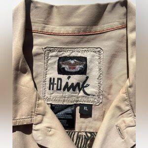 Vintage Harley Davidson HD ink Tan Short Sleeve Button Up Shirt. Huge Eagle and Snake design on the back. Side patch.