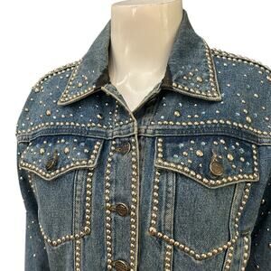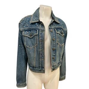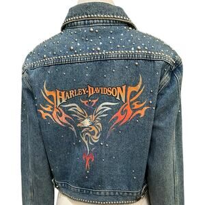 Vintage Harley Davidson Studded Denim Jacket Cropped Jean Jacket / Women’s Small -