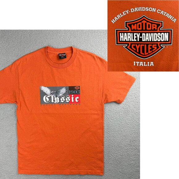 Vintage Harley Davidson T Shirt Mens Large Orange Eagle Catania Italia USA Y2K 1