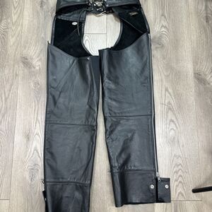 Vintage Harley Davidson Women's Black Leather Riding Chaps USA Made Size Small