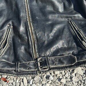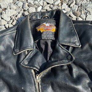 This vintage Harley-Davidson leather jacket combines classic motorcycle style with durable craftsmanship. The embroidered eagle design on the back adds iconic appeal.