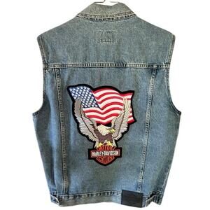 Vintage Harley-Davidson Denim Vest Eagle American Flag Patch Men’s L