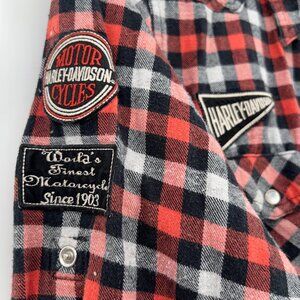 This Harley-Davidson Genuine MotorClothes plaid flannel shirt combines iconic biker style with cozy comfort. Features a red, black, and gray checkered pattern with
