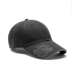 Classic black cap featuring the iconic embroidered Harley-Davidson shield logo on the front. Adjustable strap for a comfortable fit.