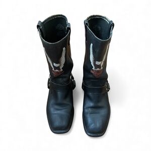 Vintage Harley-Davidson Iconic Embroidered Eagle Harness Motorcycle Boots - Sz 9