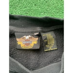 The Vintage Harley-Davidson Motorcycles Sweatshirt is a men's medium pullover featuring a graphic print of the iconic Harley-Davidson logo. Made from a comfortable cotton blend material in black color, this sweatshirt is perfect for those who appreciate a classic biker style. With a crew neck and all-season features, this sweater is great for casual wear and riding activities. This vintage piece from the 2000s is a must-have for any Harley-Davidson enthusiast looking for a nostalgic addition to their wardrobe.