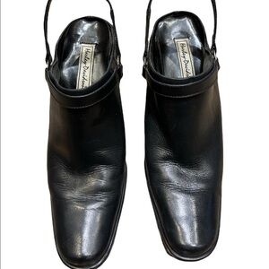 Vintage Harley-davidson Leather Buckle black slip on heels with back strap 7.5