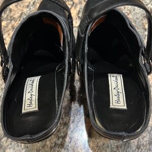 Harley-davidson slip on heels with back strap. 3" heel.. These hills are in great condition. Preowned scratches no scuffs. Please see all pictures.