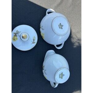 Vintage Harmony House FLAIR Sugar Bowl & Creamer Set Mid-Century Modern -Japan vintage Harmony House Yellow Rose sugar bowl with a lid. This piece is part of the Harmony House China "Yellow Rose" pattern and was crafted in Japan, likely around the 1950s. In excellent antique condition.