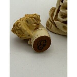 This is a vintage Harmony Kingdom Celeste trinket box from 1996, featuring a guardian angel design. Made of ivory resin with an antique finish, it has a secret compartment and measures 3 3/4 inches in height and 2 inches in width. This collectible item is part of the Harmony Kingdoms collection, manufactured in the United Kingdom.