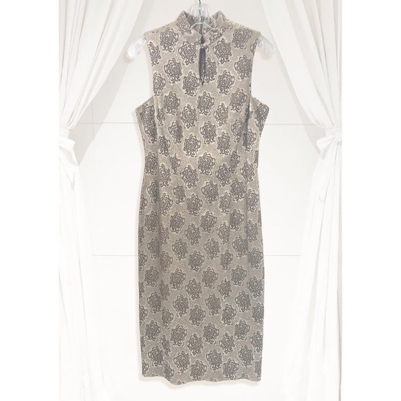 Vintage Harold's Keyhole Cheongsam Chrysanthemum Damask Shift Dress