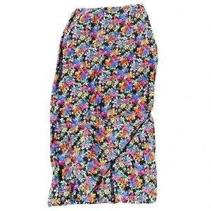 Vintage Harold’s Multicolor & Black Floral Maxi Skirt with Side Slit Size 8