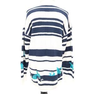 Vintage Harold's White & Blue Striped Palm Tree Sailboat Sweater Size Large